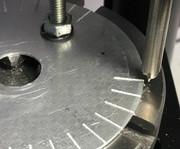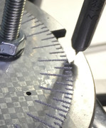 Έτσι χάραξα ένα δισκάκι με μοίρες στον διαιρέτη και έφτιαξα και έναν μοχλό που θα σφίγγετε πάνω στον κεντρικό άξονα του τόρνου για να τον ακινητοποιεί.