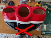 Μπορείς να το κόψεις σε σχήμα παραλληλόγραμμου, βγάζοντας τις καμπύλες και να βάλεις ένα pressure lip από ελαφρύ υλικό στερεώνοντας το με τριγωνάκι από balsa μέσα στο cowl.
