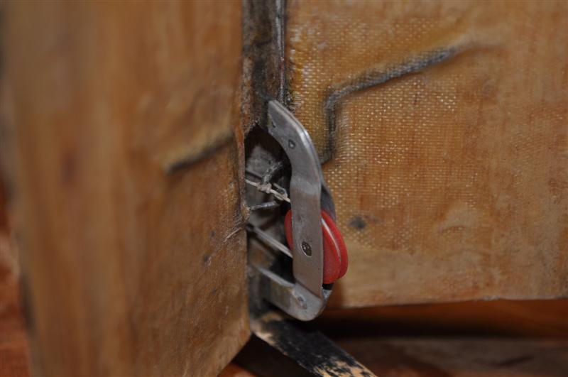 Το ελατήριο έχει μορφή Π, περνάει μέσα από τους μεντεσέδες και το κάθε άκρο του είναι κολλημένο σε κάθε ένα από τα ήμιση που αποτελούν το rudder.