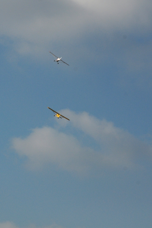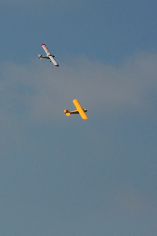 Piper Cub day Δύο Cub της Hangar 9: Ηλεκτρικό του Σωτήρη, με OS .52FS το δικό μου Φώτο: Γιάννης