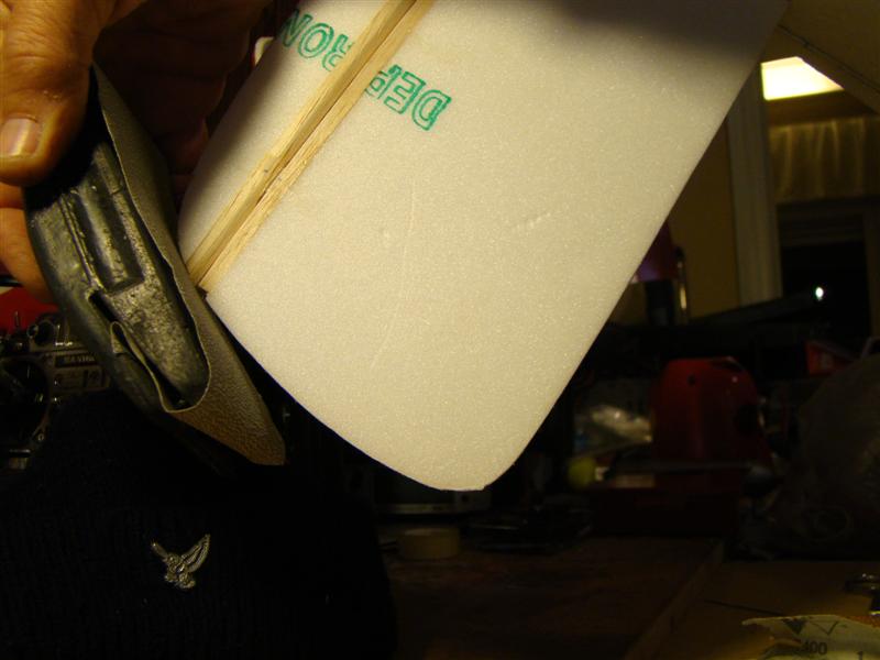 Γυαλοχαρτίζουμε την επιφάνεια του φτερού για να φύγει η "αγριάδα" του κοψίματος