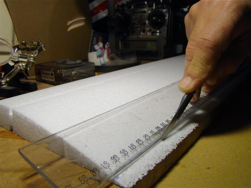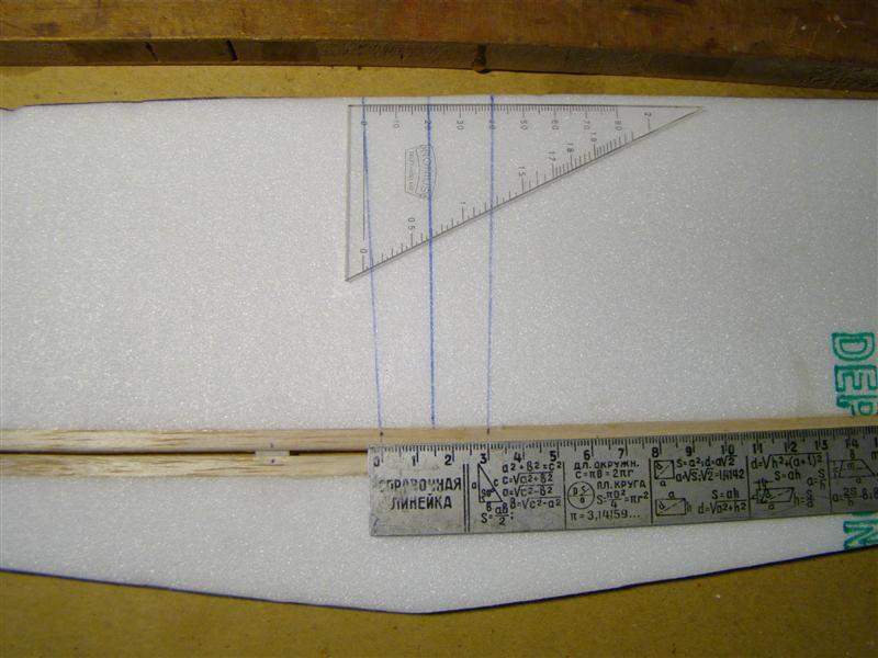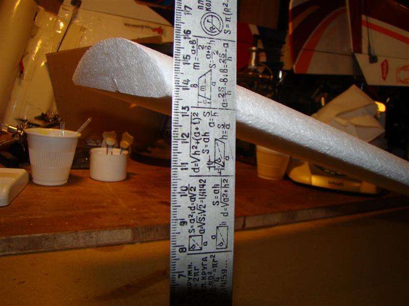 ...και ελέγχουμε τη δίεδρο με ένα χάρακα. Η απόσταση πρέπει να είναι  13,5cm (περίπου) στο ακροπτερύγιο, όταν το άλλο φτερό πατάει σε μια οριζόντια επιφάνεια.
