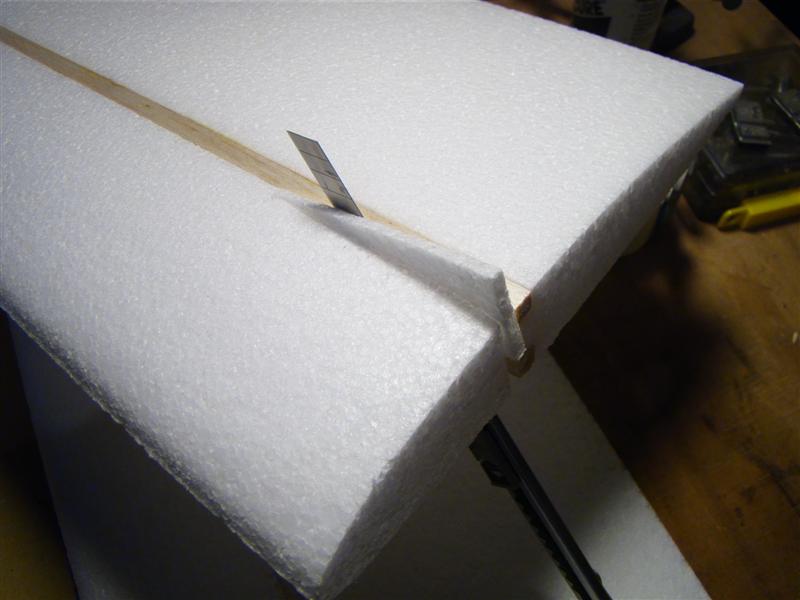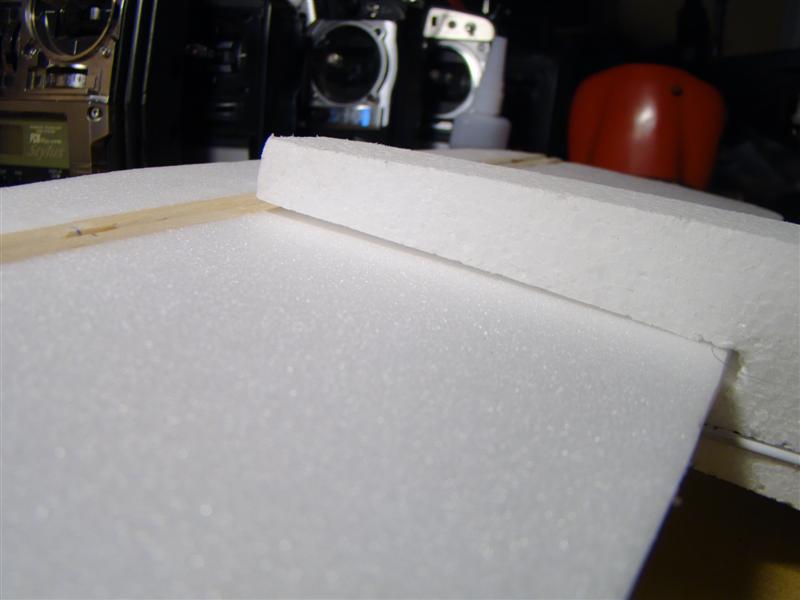 Αν χρειάζεται (και χρειάστηκε) διορθώνουμε την οριζόντια θέση του πτερυγίου, κατά την κόλληση, βάζοντας ένα λεπτό κομμάτι από depron η φελιζόλ σε μορφή σφήνας.