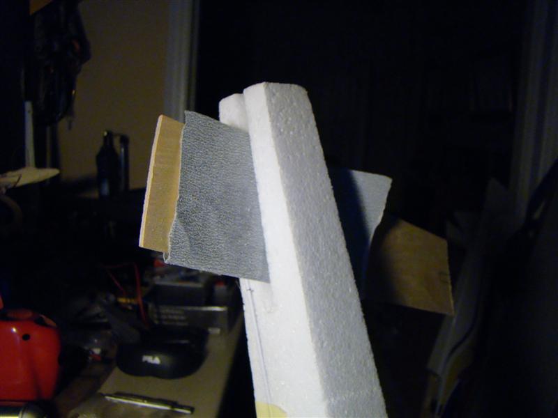 Αν χρειάζεται (και χρειάστηκε) γυαλοχαρτίζουμε προσεκτικά με λεπτό γυαλόχαρτο διπλωμένο σε ένα ξύλο πάχους 3 - 4 mm. Φροντίζουμε να ταιριάξει ομαλά και να μη παραμορφώνεται το φελιζόλ όταν μπαίνει το πτερύγιο.