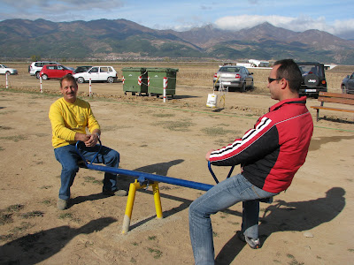 δοκιμάζουν το πρώτο παιχνίδι από την παιδική χαρά που ετοιμάζουμε