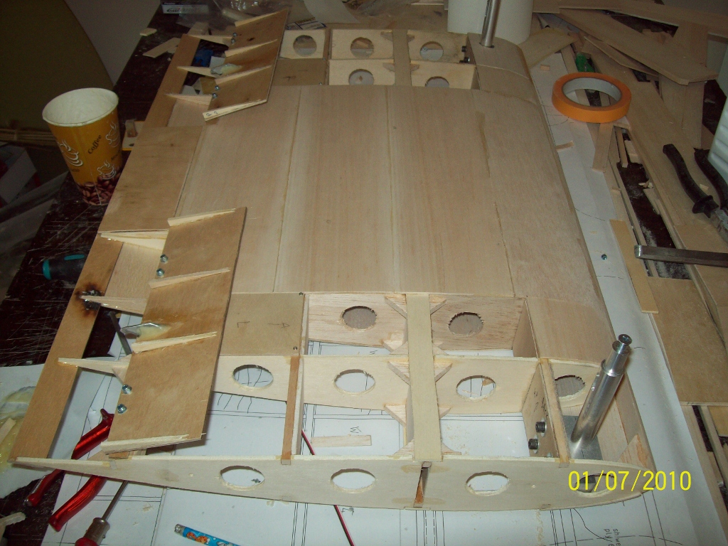 Χτίστικε σε δύο δόσεις, μία αριστερή και μία δεξιά. Κάθε μισό επικαλύφθηκε με μπάλσα 3mm όσο ήταν ακόμη καρφιτσωμένο στο τραπέζι για να μήν στραβώσει. Στη συνέχεια τα δύο κομάτια κολλήθηκαν μεταξύ τους.
