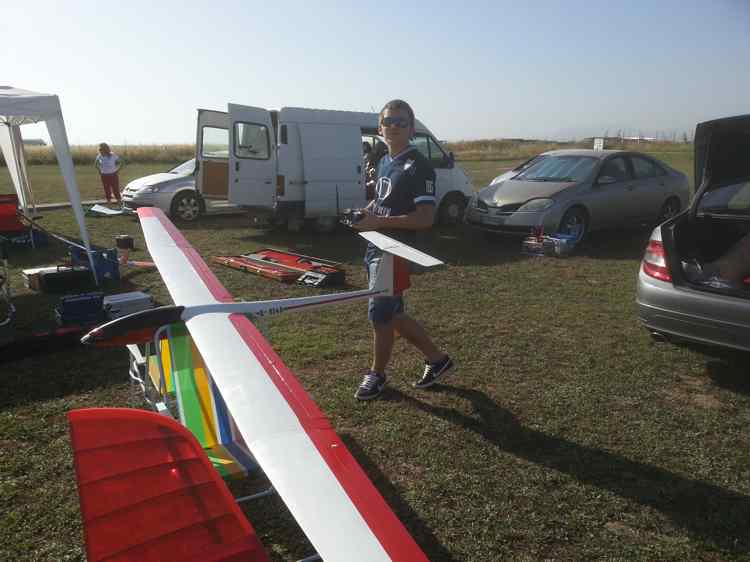 Το τηλεχειριστήριο σεταρίστηκε στο περίπου (εμπειρικά) στο έδαφος και για πρώτη φορά θα πετούσαμε με το γκάζι στο κουμπί και τα φλάπς στο στίκ του γκαζιού!!!