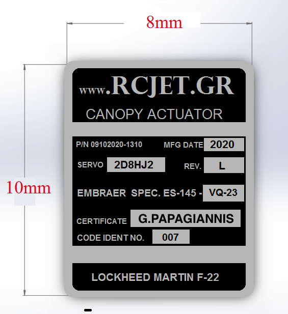 μπορεί και εκτυπώνει μεταλλικό ασημί      (εξομοιώνοντας αντίστοιχα ταμπελακια που βρίσκονται στα αεροσκάφη)