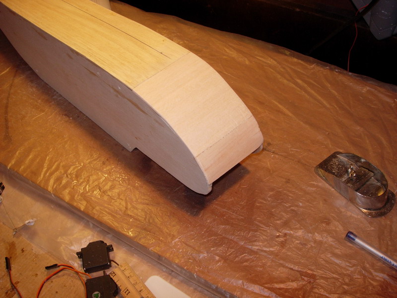 Μετά από μερικές ώρες, όταν η ρητίνη έχει στερεοποιηθεί, μπορούμε να ολοκληρώσουμε την επικάλυψη της ατράκτου στο εμπρός μέρος από κάτω. Χρησιμοποιούμε μπάλσα 2,5mm με τα νερά κάθετα στο διαμήκη άξονα της ατράκτου για να μπορεί να παρακολουθήσει την καμπυλότητα της μύτης.