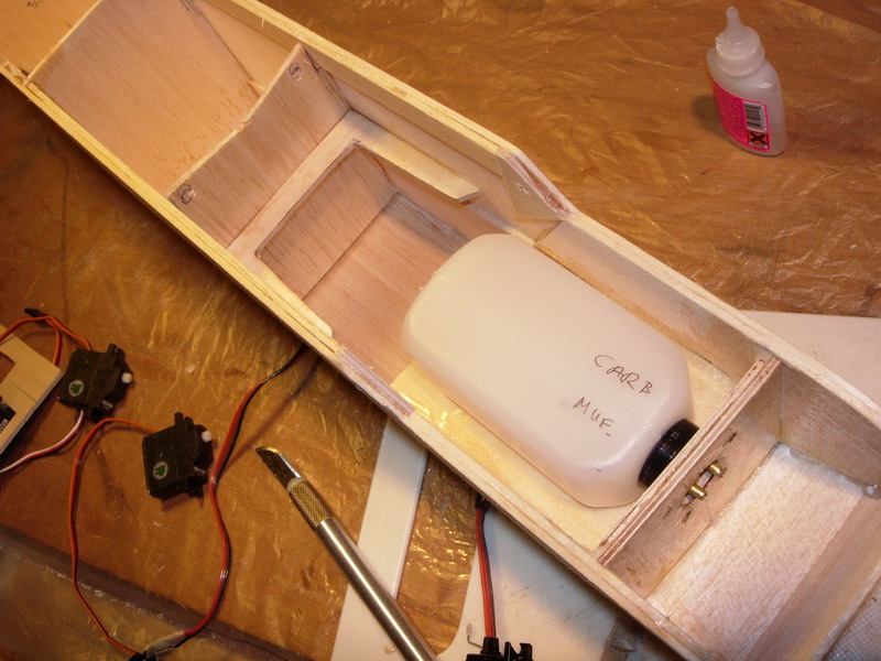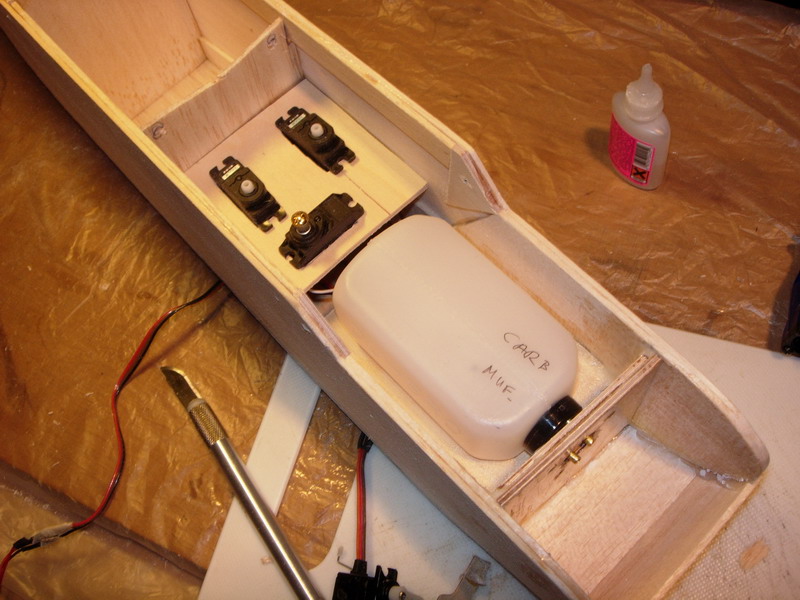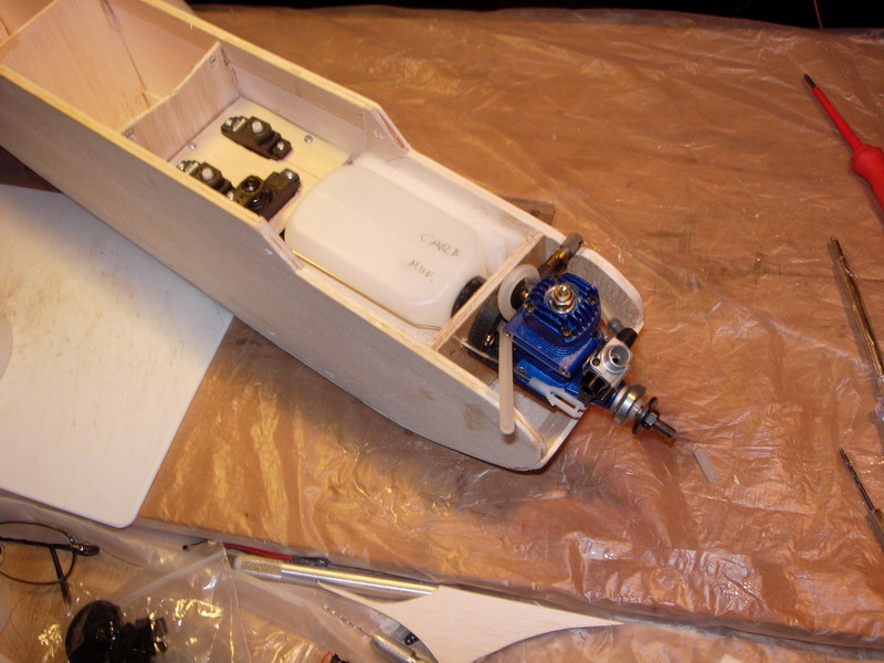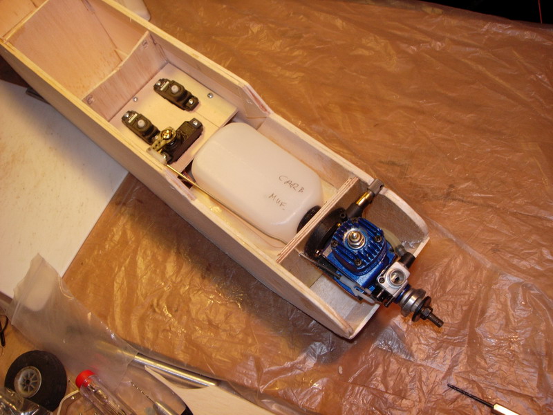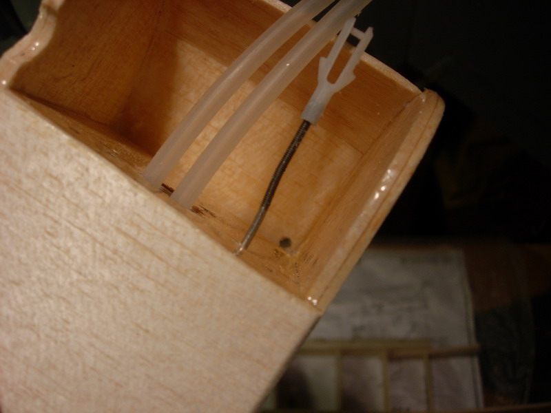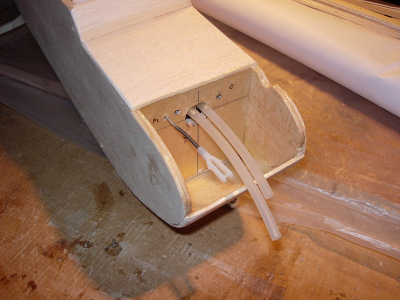 Όταν μείνουμε ικανοποιημένοι από την κίνηση της ντίζας (που πρέπει να κινείται ελεύθερα), σημειώνουμε τα σωληνάκια του tank στο firewall (για να μη ψαχνόμαστε) και επικαλύπτουμε την άτρακτο με μπάλσα 2,5mm