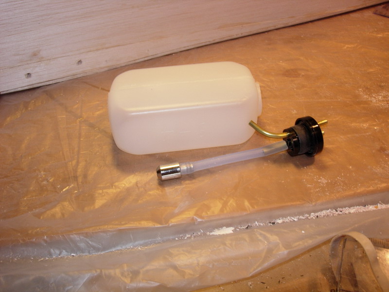 Φροντίζουμε η βάση του tank να έρθει σε τέτοιο επίπεδο ώστε η μέση του tank να βρεθεί ακριβώς στη τρύπα που έχουμε ανοίξει για τα σωληνάκια. Όταν είμαστε ικανοποιημένοι από τη θέση του firewall και της βάσης του tank, βάζουμε μερικές σταγόνες CA για να κρατηθούν στη θέση τους.