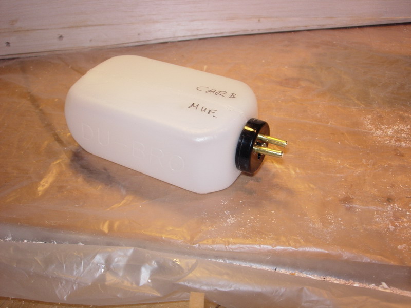Στη συνέχεια αφαιρούμε μηχανή και βάση και περνάμε όλο τον χώρο της μηχανής με εποξική ρητίνη για να στεγανοποιήσουμε τον χώρο από τα καύσιμα. Στη φωτογραφία φαίνεται η διαμόρφωση που έγινε στην αριστερή πλευρά της ατράκτου για τη βελόνα του καρμπυρατέρ.