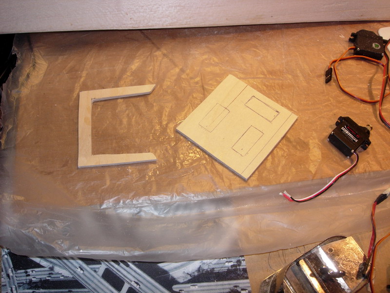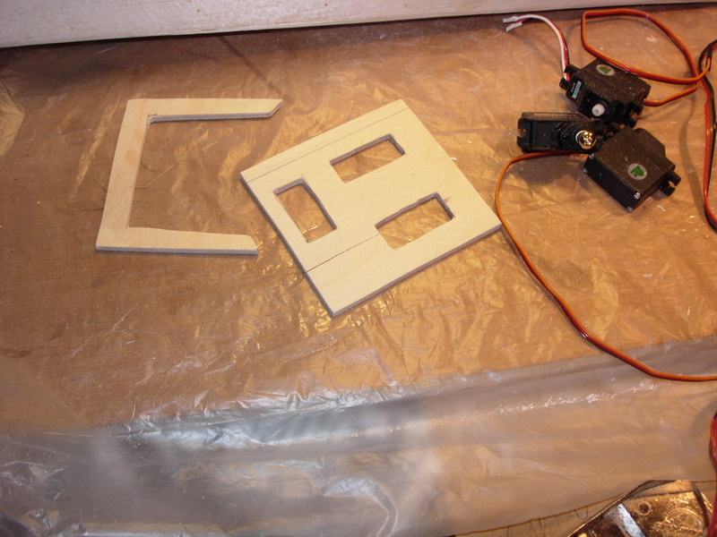 Κόβουμε ένα πλαίσιο από κόντρα πλακέ, όπως φαίνεται στη φωτογραφία, το οποίο θα κολληθεί μόνιμα στην άτρακτο και πάνω σ'αυτό θα βιδώσουμε τη βάση των σέρβο.