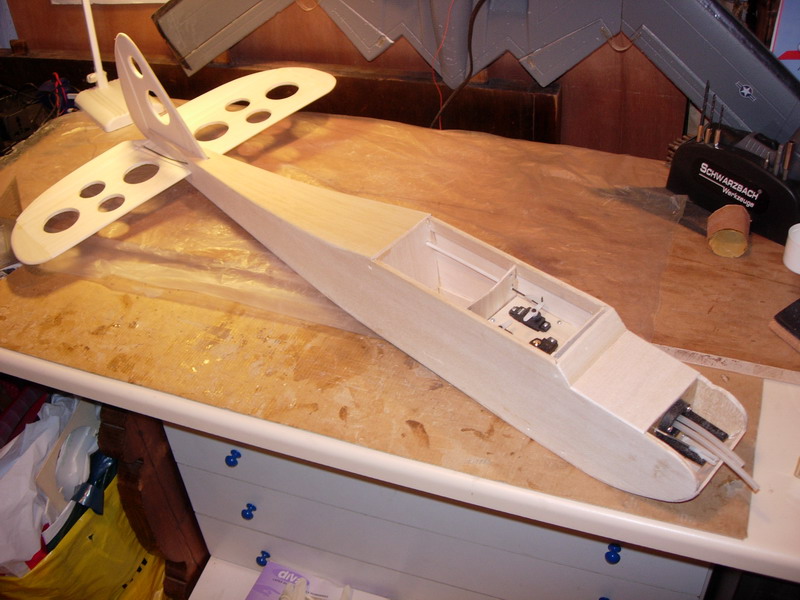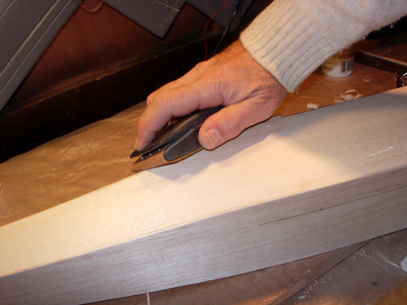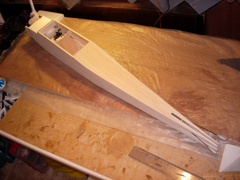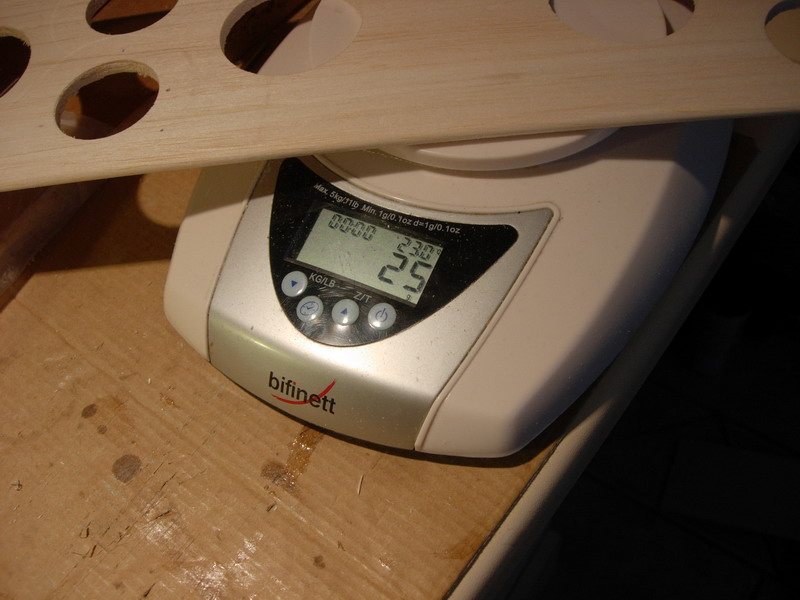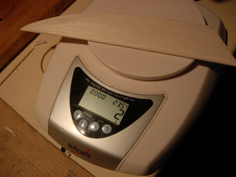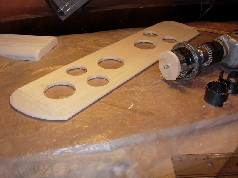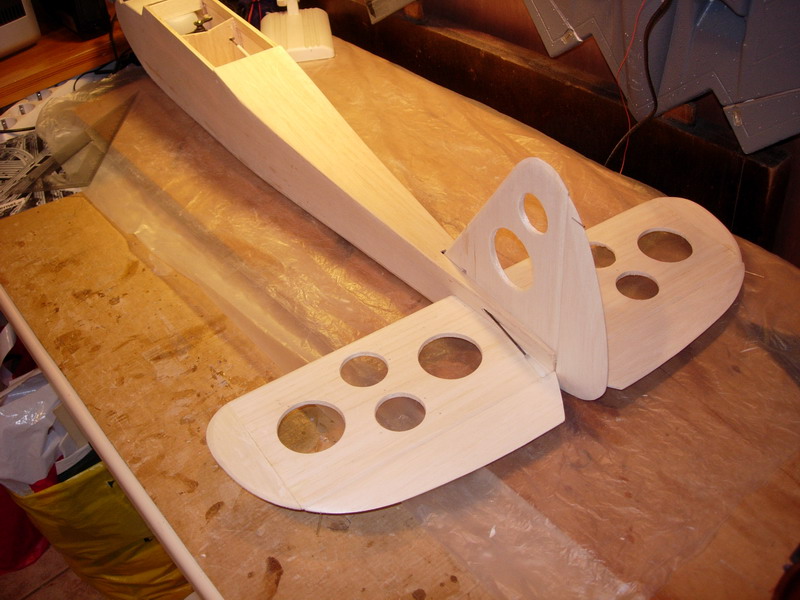 Γυαλοχαρτίζουμε το stabilizer. Ο jkon συνιστά να ανοίξουμε τρύπες για να ελαφρώσουμε την ουρά. Όπως είπαμε, κάθε γραμμάριο βάρος πίσω χρειάζεται 4 γραμμάρια μπροστά για να ζυγίσει.