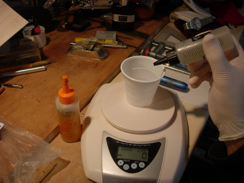 Για την ανάμιξη της ρητίνης χρησιμοποιούμε πλαστικά ποτηράκια μιας χρήσης και ζυγαριά. Δεν ξεχνάμε τα γάντια, την μάσκα και καλό εξαερισμό του χώρου. (Ξέρω, ξέρω είναι δύσκολο με τα κρύα)