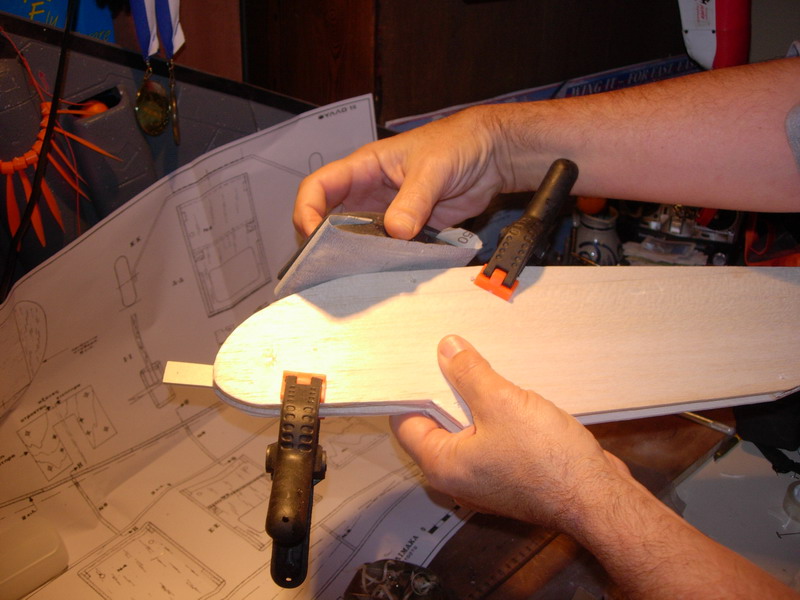 Στερεώνουμε μαζί τα δύο πλευρά της ατράκτου και γυαλοχαρτίζουμε. Η σκόνη της μπάλσας είναι ψιλή και ελαφριά. Εισχωρεί παντού. Συμβουλή: Απομακρύνετε εκτυπωτές, ηλεκτρονικές συσκευές, πομπούς τ/κ, φωτογραφικές μηχανές κλπ.