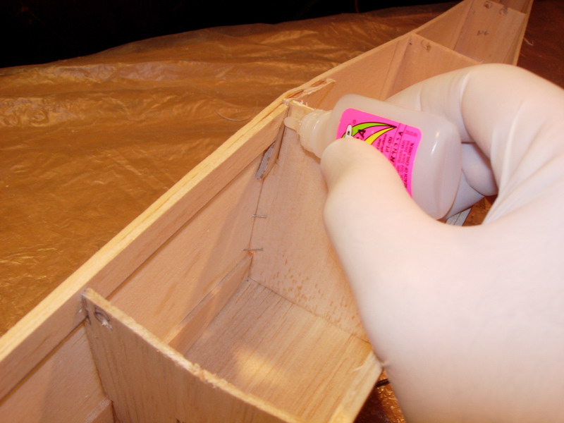 Ενισχύουμε την άτρακτο με κόντρα πλακέ 3mm στα σημεία που θα περάσουν οι καβίλιες. Σημειώνουμε προσεκτικά τη θέση των νομέων και ειδικά του firewall γιατί καθορίζει την γωνία downthrust.
