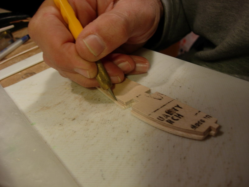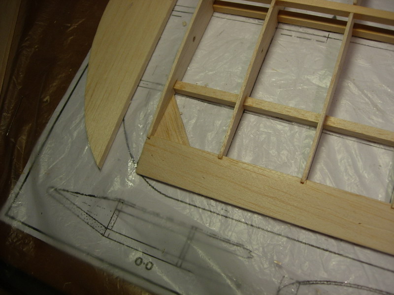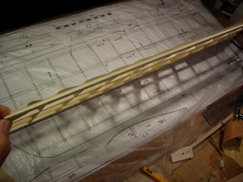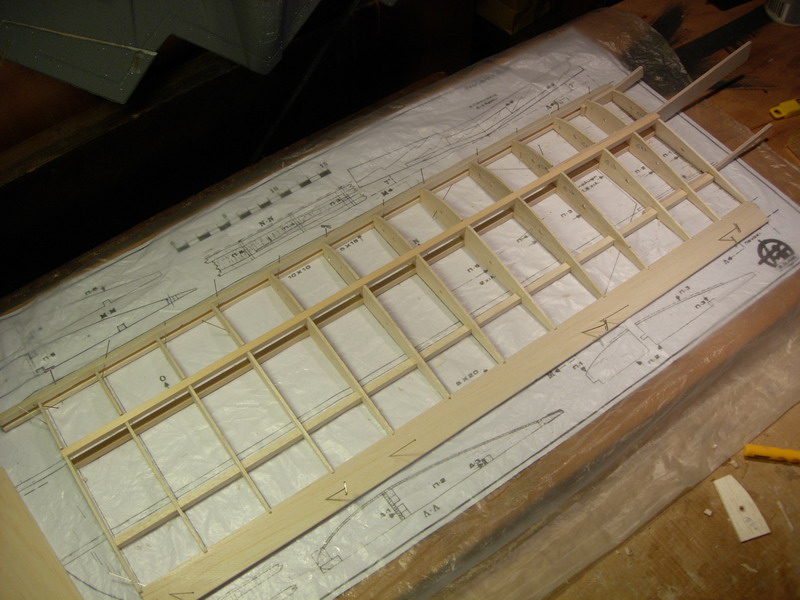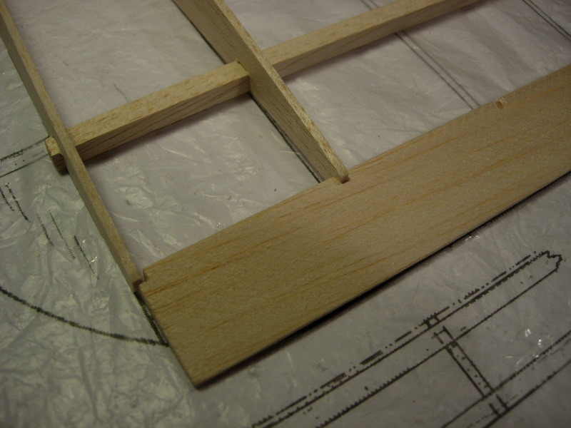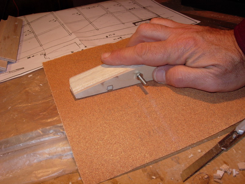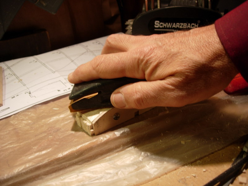 Ετοιμάζουμε τα κεντρικά πλευρίδια αφαιρώντας 1,5mm με οδηγό ένα πλευρίδιο από κόντρα πλακέ που έχουμε μετατοπίσει προς τα κάτω. Ετοιμάζουμε το πλευρίδιο Π-3 που έχει planking μερικώς (εμπρος και πίσω)