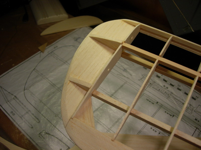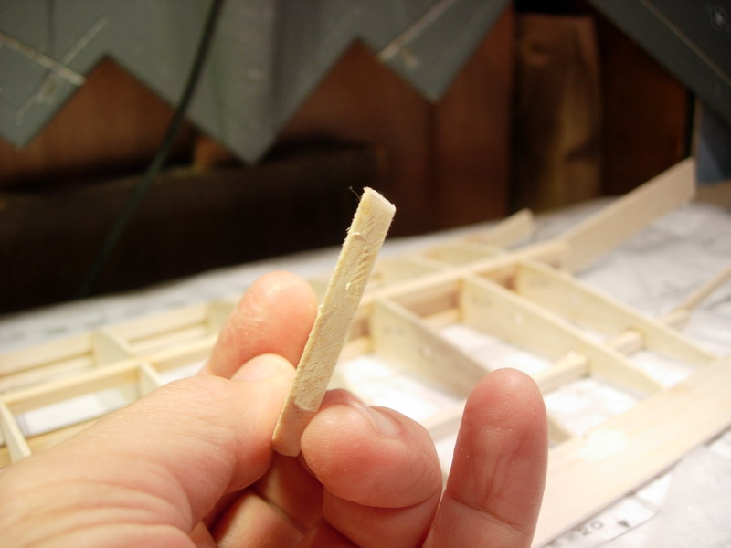 Ενισχύουμε την κάτω γωνία του ακροπτερυγίου με ένα τρίγωνο από μπάλσα 2,5mm. Δεν προβλέπεται από το σχέδιο αλλά έχω "ένα θέμα" με αυτό το σημείο σε αρκετά αεροπλάνα. Όταν στρογγυλέψουμε τα ακροπτερύγια το σημείο αδυνατίζει αρκετά
